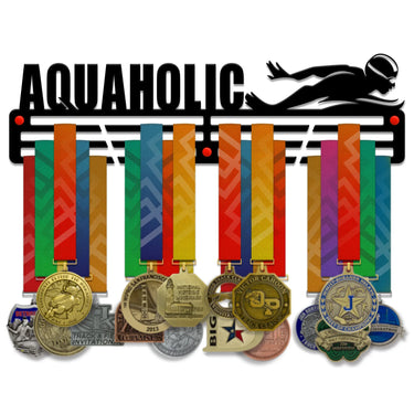 "Aquaholic" Medal Hanger — Swimming & Tri Display (18", 3 mm Steel)